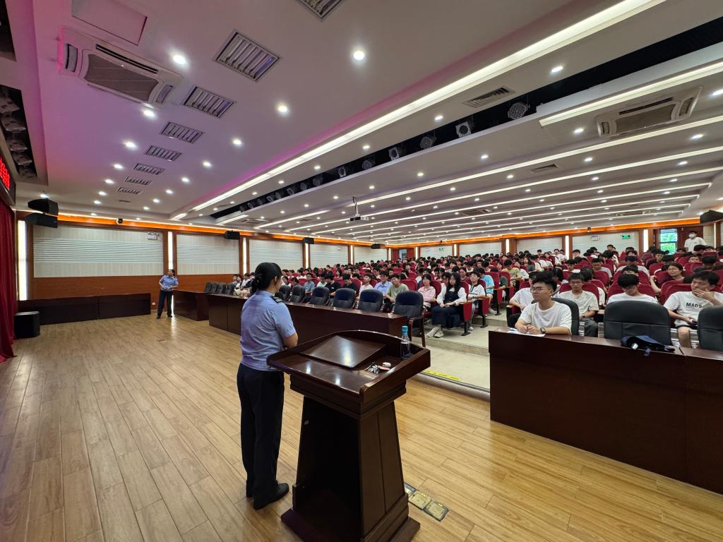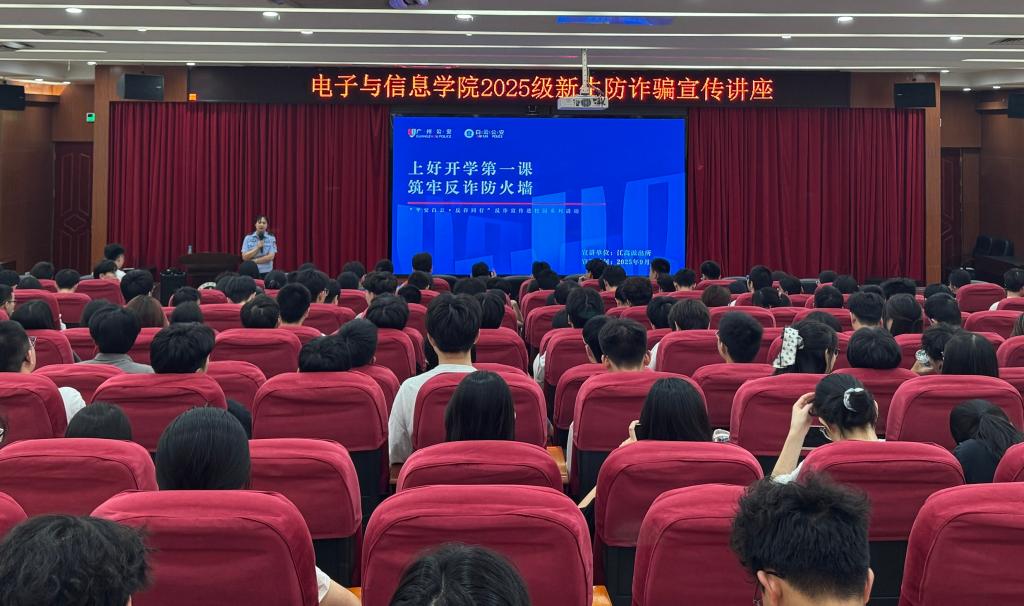 为切实提升师生防诈安全意识,有效遏制电信网络诈骗案件发生,9月18日下午,伟德betvlctor体育联合江高镇派出所在白云校区三教104报告厅举办“全民反诈·守护平安”专题防诈骗宣传讲座。江高镇派出所两名民警出席活动并作专题授课,2025级部分新生及辅导员共计300余人参会。